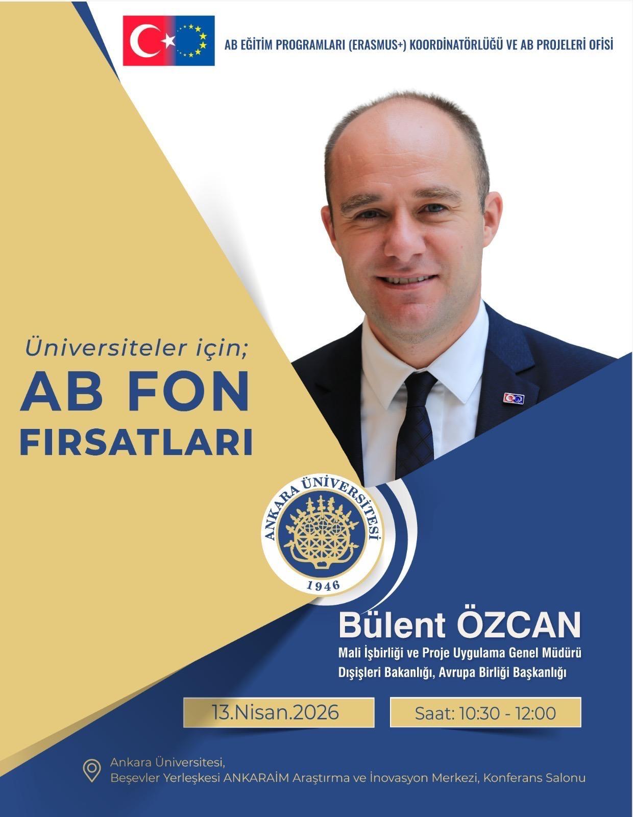13 Nisan 2026 tarihinde saat 10.30 ile 12.00 arasında ANKARAİM konferans salonunda AB Fon Fırsatları Konulu etkinlik yapılacaktır.