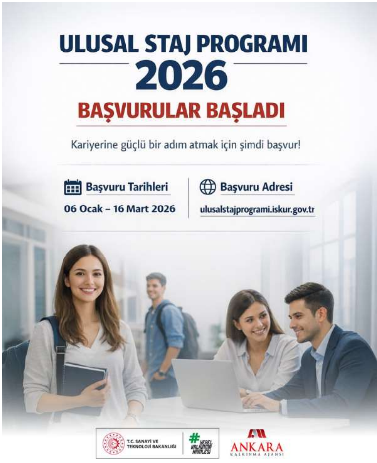 The National Internship Program, eagerly awaited every year and cited as an example worldwide, has opened its 2026 applications. Starting in 2026, this program, run by the Turkish Employment Agency (İŞKUR) under the auspices of the Presidency, offers early career opportunities such as internships, job shadowing, and training provided by public institutions, universities, and thousands of private sector organizations. You can apply via https://ulusalstajprogrami.iskur.gov.tr.